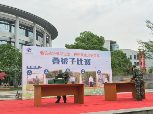 首先,由学生处处长陈海清致开幕词,陈海清指出规范学生寝室内务是学校养成教育的重要抓手,同学们可以通过积极投身文明寝室创建活动来提升个人的综合素质。在寝室内务上要精益求精,从叠被子这件小事做起。