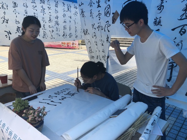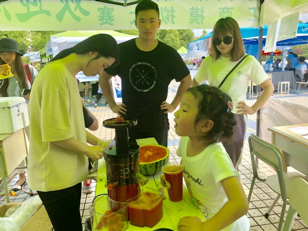 汉服社、兰亭书协、手工协会、武术协会等学生社团展现了中华传统文化社团的刚柔与雅美。衢州市第六届“礼遇衢职 创赢未来”大学生工商模拟市场大赛正在思齐广场上进行,在衢州市委市政府创建“南孔圣地 衢州有礼”城市品牌的大背景下,开设“有礼一条街”,将衢州“礼”文化的精髓融入到校园文化,让广大青年学生在参赛的同时能成为“有礼衢职人”,真正做到文化自信。星巴克、泰隆银行等校企合作企业的优秀毕业生代表向大家展示了我校校企合作成果,经济管理学院“杜拉拉训练营”的同学向大家汇报职场文化、白领文化的训练成果,花为你开、南孔爷爷等项目都进入到大学生工商模拟市场大赛的舞台。很多市民朋友带着孩子们“赶集”来了,李梦然小朋友抓完鱼之后,在榨汁店买了一杯西瓜汁和她的小伙伴分享。工模大赛通过真实的市场检验,进一步强化了学生们的创业水平与营销能力。