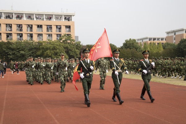 10月19日上午9时,我校2018级新生军训总结表彰大会在田径场隆重举行,校领导江爱民、陈青、黄云龙、章加春、何百通、徐浪静、孔庆红出席本次表彰大会,大会由副校长傅元勋主持。