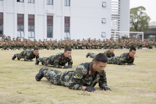激昂的国歌声正式拉开了本次大会的序幕,从国旗方阵,到助教方阵,再到各个学院的学生方阵,各连队精神抖擞、意气风发、气势如虹。2018级新生踏着铿锵有力的步伐,喊着响彻云霄的口号,向校领导及衢州武警支队彰显了我们衢职院学生的热情与活力。分列式结束后,进行的是男子军体拳和女子的防身术的表演,近百位新生的联合表演展现了短短10天军训赋予衢职学生军人般的担当和责任!教官为全体新生表演擒拿格斗术,每位教官配合默契,每一次的上翻、卧倒都整齐划一、配合默契,吸引了新生们的眼光,赢得了雷鸣般的掌声。
