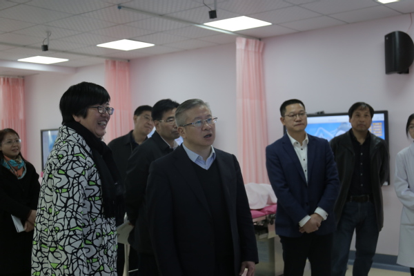 徐文光一行首先来到了我校医学实训楼,参观了护理实训基地、母婴护理实训基地、老年护理基地、中药学实训基地。在母婴护理实训室,徐书记拿起月嫂培训手册仔细观看,详细了解了月嫂的培训情况,并对我校的社会培训工作给予了充分的肯定。