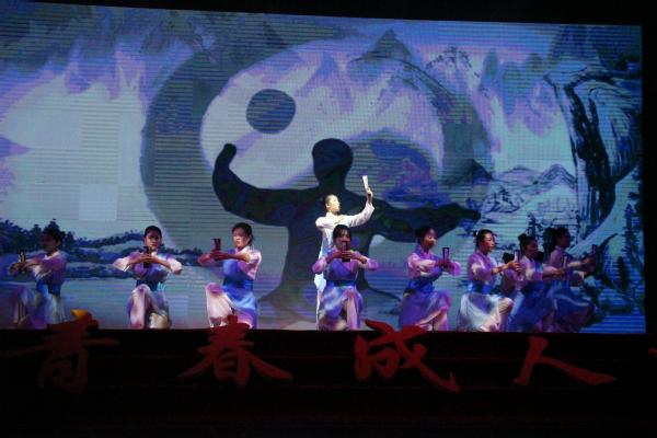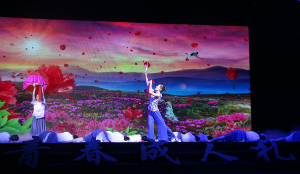 “2018青春成人礼”以“我和我的祖国”为主题,分为“爱国”、“励志”、“求真”、“力行”四个篇章。整场典礼以老师、学生的爱国励志情怀为主线,融合了舞蹈、歌曲、舞台剧、走秀、演讲等形式多样、精彩纷呈的节目,以寓教于乐的形式启迪2018级新生们热爱祖国、感恩祖国、报效祖国。