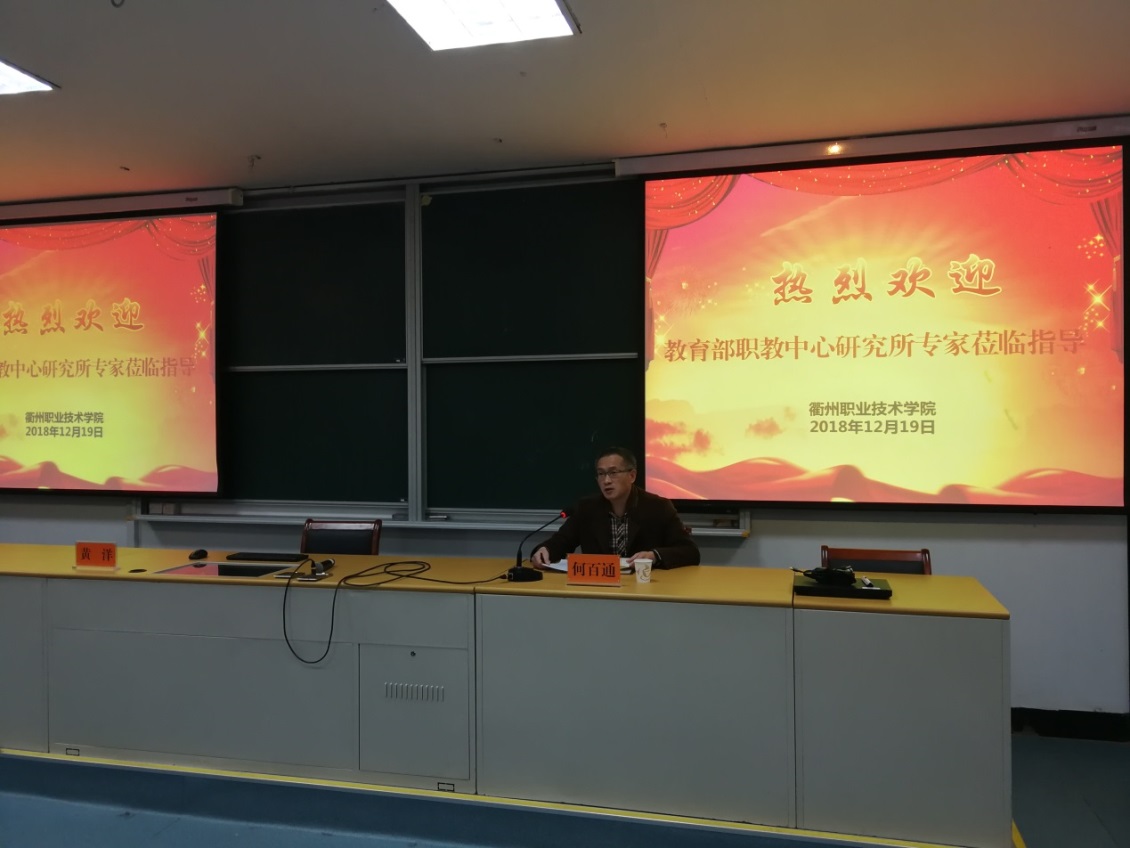 教育部职业技术教育中心研究所教学室刘义国副主任围绕 “基于标准的专业教学改革与教学成果奖”主题, 解读了高职教育质量-标准政策, 刘主任建议以标准推进专业教学改革,并结合部分职业院校的实践创新案例传授了教学成果奖申报的技巧和方法。