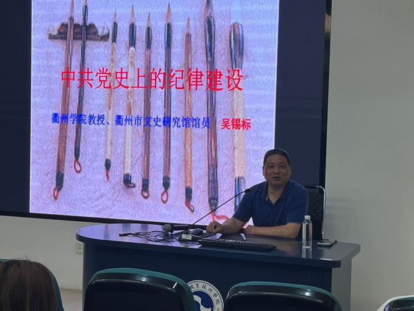为营造学纪、知纪、明纪、守纪浓厚氛围,推进党纪学习教育走深走实,5月17日上午,后勤保卫处邀请衢州学院吴锡标教授开展党纪学习教育专题讲座。后勤保卫处党支部全体党员、物业公司管理干部,资产与实训室管理处全体党员及滨江社区党员代表共60余人参加了讲座。