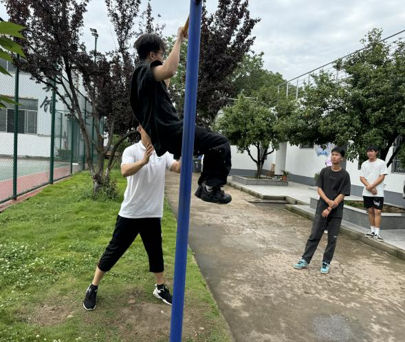 在技术指导中,杨老师从正确握杆、摆动起始、引体助力等方面展开详细教学,配合上专业的技术演示,让在场师生很快就初步掌握了技术要领。为了更好的将理论与实践结合,杨老师进行了逐一的技术指导。