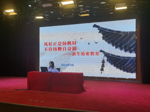 9月20日下午,2024级始业教育动员会在一号报告厅隆重举行。动员会上,院长杨明华发表了热情洋溢的开学致辞,向新生们表达了最热烈的欢迎和最美好的祝愿。院党总支副书记(主持工作)、副院长吴忠叮嘱同学们要善于把握时间,希望同学们珍惜时光,努力学习,全面提升自己,为未来的发展打下坚实的基础。全体院领导班子参加动员会,会议由党总支副书记孔慧兰主持。