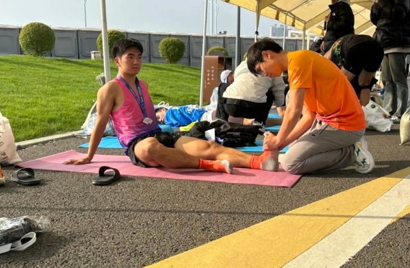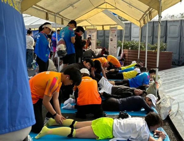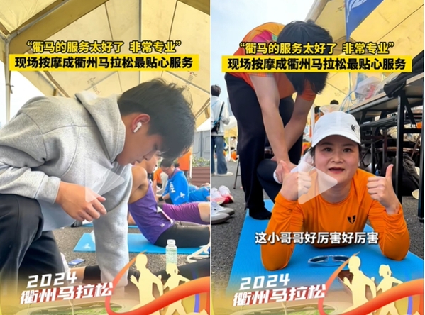凌晨四点,当城市还沉浸宁静之中,志愿者同学们已经整装待发,他们带着对体育的热爱和对志愿服务的热情,迅速集结完毕,并奔赴各自负责的服务岗位。121名志愿者均来自衢职院休闲体育专业和体育运营与管理专业,他们将课堂上学到的专业运动知识运用到了实践中,为参赛运动员提供了冰敷、拉伸放松专业服务。同学们专业的手法和热情的服务赢得了参赛运动员的高度赞誉。现场运动员纷纷表示,“现场按摩是衢州马拉松最贴心的服务”,志愿者的按摩手法“非常专业”“很厉害”。