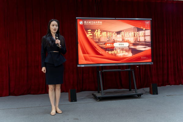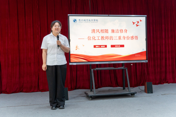 郑紫璇老师以《三镜耀初心 清风谱匠章》讲述年轻职教人的成长,从家庭熏陶到科研诚信、纪律坚守,展现新时代青年以 “镜” 正心、书写清风答卷的决心。
