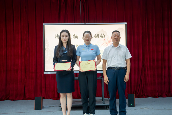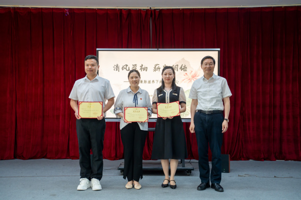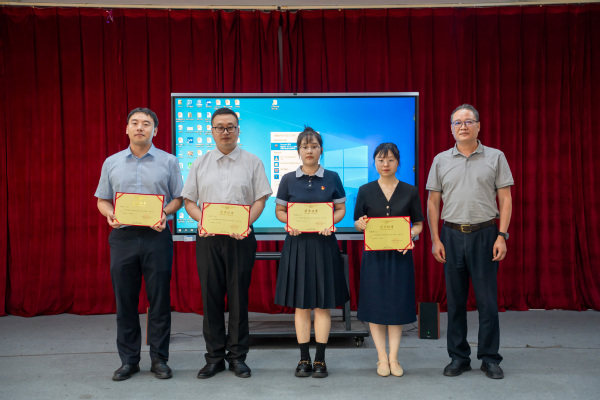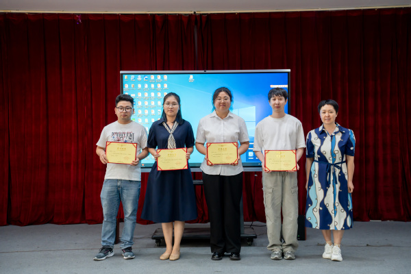 周帅为优胜奖获奖教师白丹丹、郑小青、邵思程、郑俊颁奖。