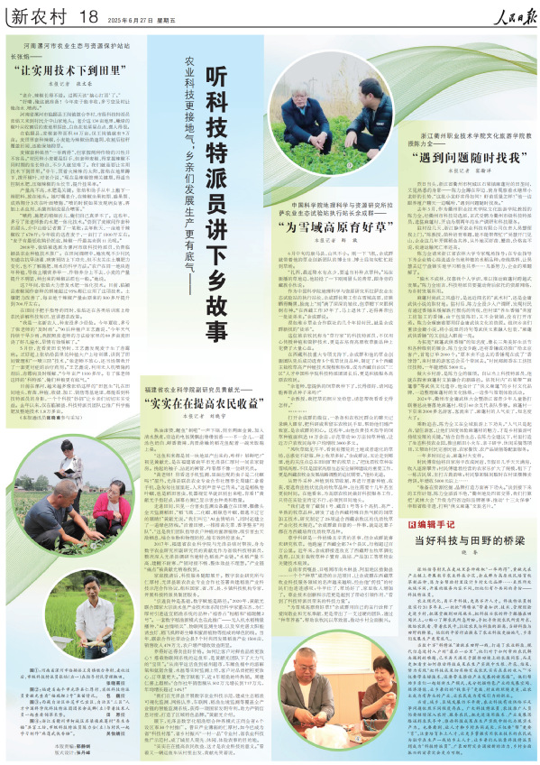 《人民日报》:农业科技更接地气,乡亲们发展生产更有底气——听科技特派员讲下乡故事